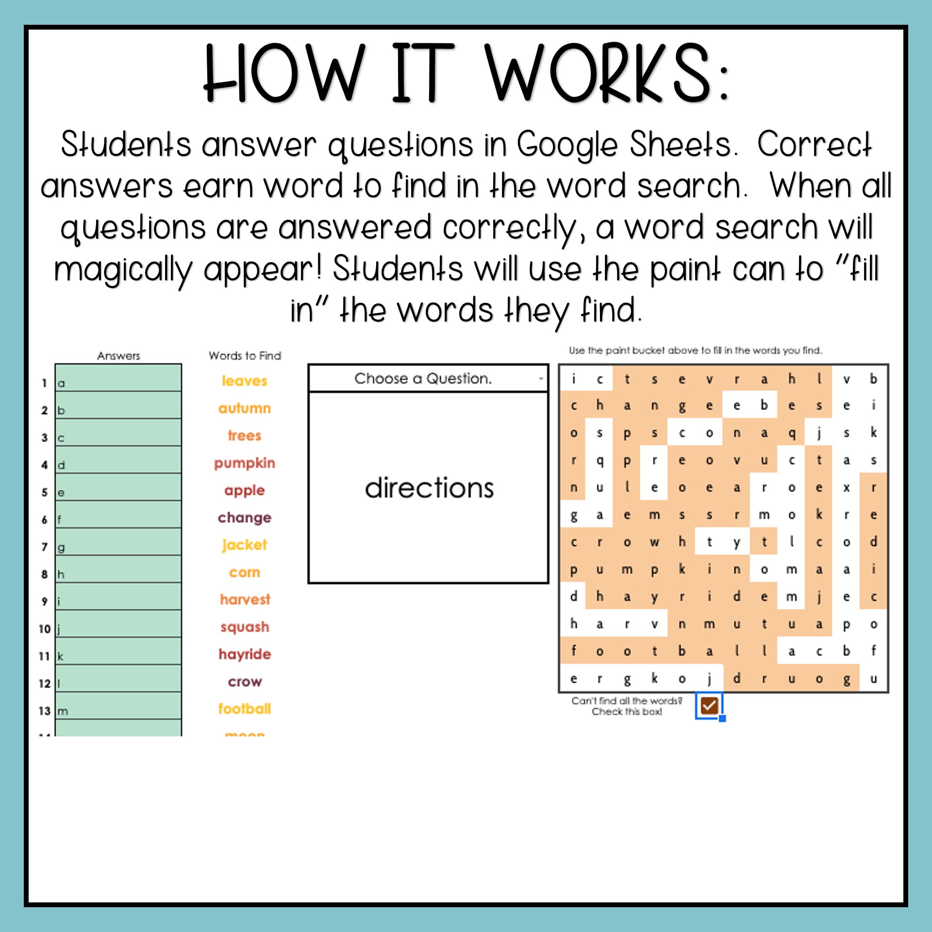 Self Checking Math Worksheets & Teaching Resources | TpT Digital Download. PDF (13.03 MB) This pack was created to provide teachers with simple centers that students can check themselves for immediate feedback. Included in this pack are 9 fall themed puzzles covering a variety of math skills. These are perfect as simple, self-checking centers.
